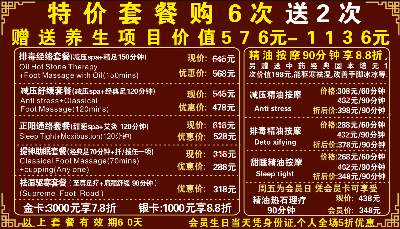 店內設有單人、雙人、多人等不同包廂。環境古典幽雅,新中式風格,彌漫著淡淡的薰衣草香味,幽暗的燈光,潺潺的流水聲和輕柔的音樂聲,營造一種放松、安靜的氛圍。技師專業熟練,有豐富的工作經驗。是一家適合養生、放松、改善亞健康的中高檔會所。